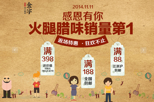 入了12月的江南,空氣中總會飄散著一股似近似遠(yuǎn)的肉香味,勾人魂魄到直咽口水。窗檐下懸掛的香腸臘肉有一種“年之將近”的即視感,因為那就是刻到骨子里的年味啊。就算時代再變化,“小雪腌菜,大雪腌肉”的習(xí)慣依然被懂得生活的人代代傳承著。2014年的金字天貓旗艦店雙12來了,為您準(zhǔn)備的好臘味上新,十二道臘味年前抄底價。春運(yùn)車票已經(jīng)可以買了,臘味也同樣:回家過春節(jié),你準(zhǔn)備好了沒有?