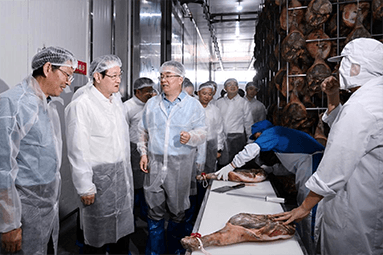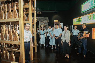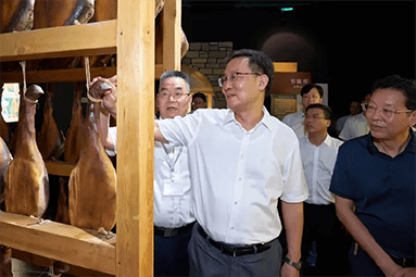 8月22日,金華市委書記朱重烈專程赴金字火腿公司調(diào)研金華火腿產(chǎn)業(yè)振興工作。朱書記在公司領(lǐng)導(dǎo)周國華、馬曉鐘、吳月肖陪同下,走進(jìn)火腿文化展示館和產(chǎn)品展廳。
