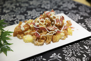 “金字百變火腿”創(chuàng)意秀,遍尋民間家?;鹜炔说膭?chuàng)意做法。征集消息發(fā)出至今,已有不少市民愿意一秀才藝。?在這個過程中,有專業(yè)大廚,有退休老人,有美女廚娘,也有這個城市里最普普通通的上班族。不可否認,大廚、專業(yè)人士們的擺盤、用料更為講究,但其實,很多時候,帶給我們驚喜的卻反倒是那些看上去普普通通,甚至連名字都是現取的家常菜,夠自然,夠純粹,甚至,還經常能從中發(fā)現一些小驚喜。或許,也就是做菜人的這些小心思,成就了我們這些品嘗者味蕾的驚喜,就像這次來應征的這桌火腿菜,看著普通,吃到的人,微笑卻無一不由心綻